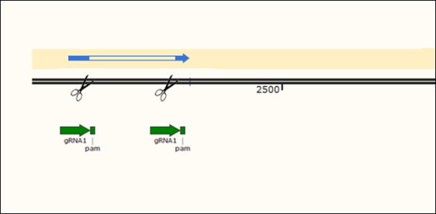 回收目的条带送测后,进一步确定,该条带确为双gRNA发生精确切割后的KO条带,证明混合克隆中发生了大规模的敲除编辑事件。
