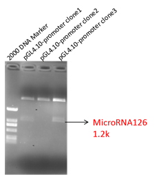 pGL4.10-MicroRNA126promoter双酶切鉴定如下图: