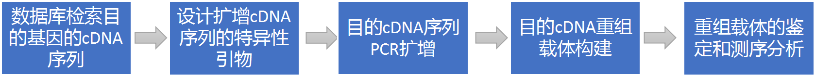 根据客户提供的基因ID号检索对应的基因cDNA序列,针对该序列设计特异性引物,扩增该基因全长的cDNA序列;