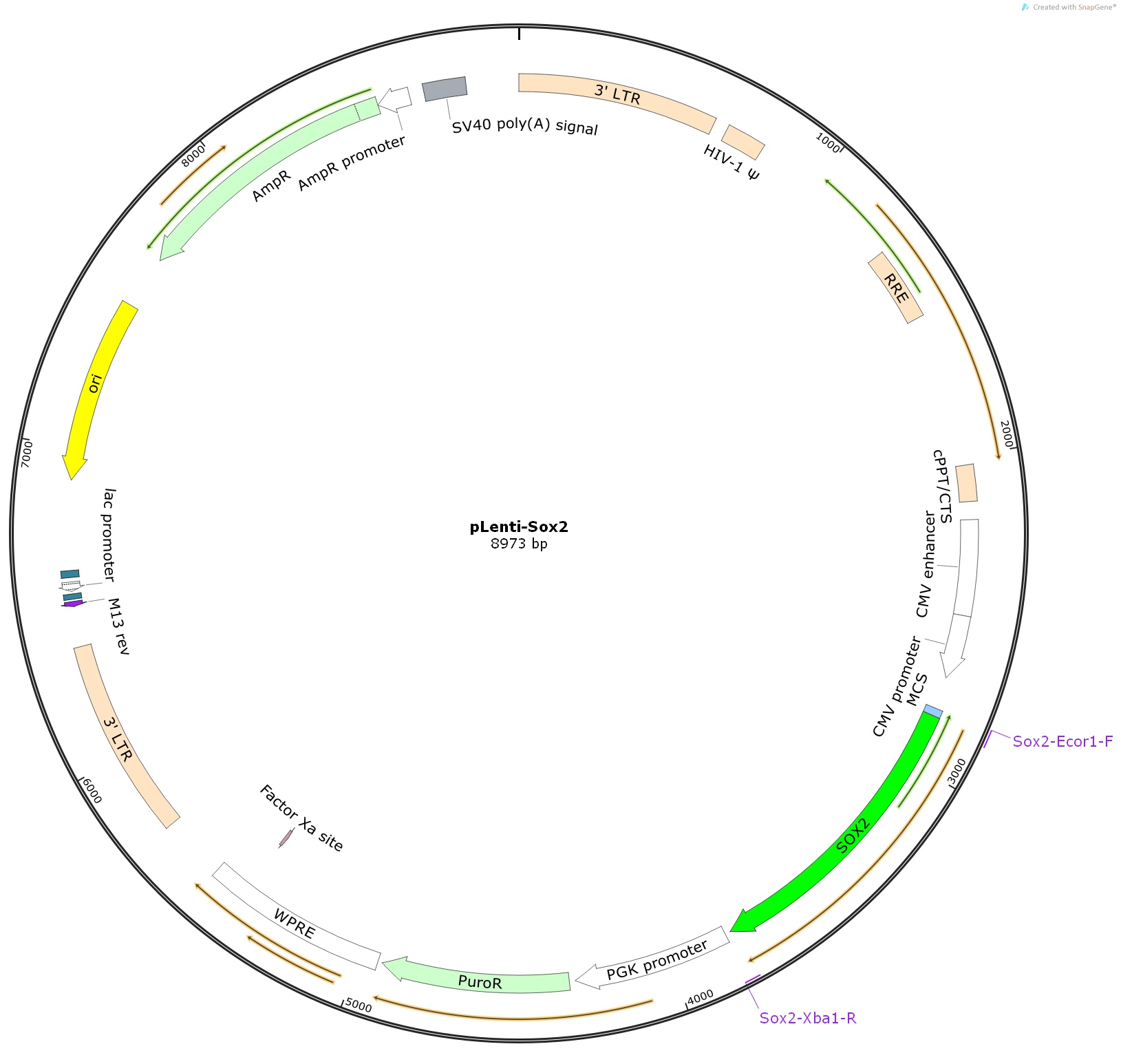(4) 采用无缝克隆技术将hSOX2编码序列连接到plenti-puro载体上