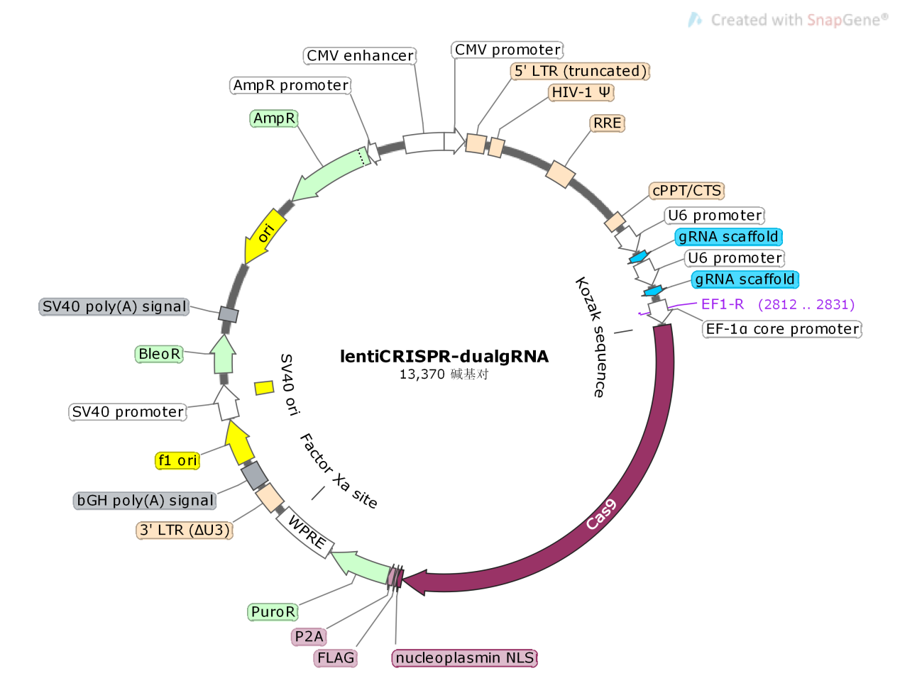 B2M基因敲除双gRNA/Cas9(lentiCRISPR-dual gRNA)图谱