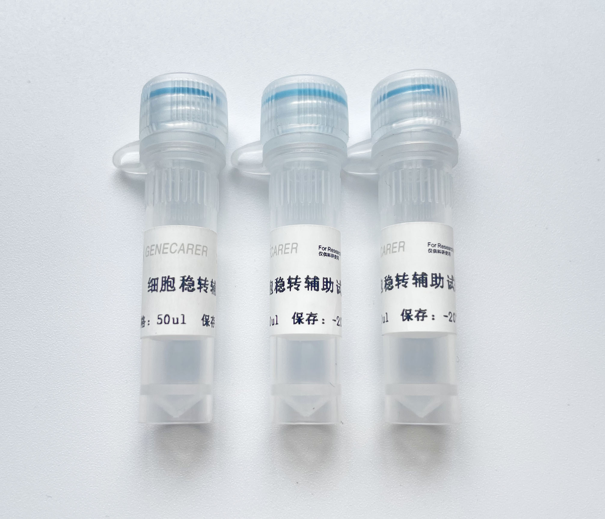 细胞稳转辅助试剂是配套基恩科生物GB系列载体,进行目的基因稳转细胞系构建使用,将细胞稳转辅助试剂与目的基因表达载体混合后进行细胞转染,抗性筛选筛选后进行稳转细胞系细胞系构建,主要应用于长片段基因(CDS≥4kb)的稳转细胞系构建。
