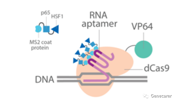 四、CRISPR SAM系统,通过融合VP64、MS2-P65-HSF1系统进行稳转细胞系构建: