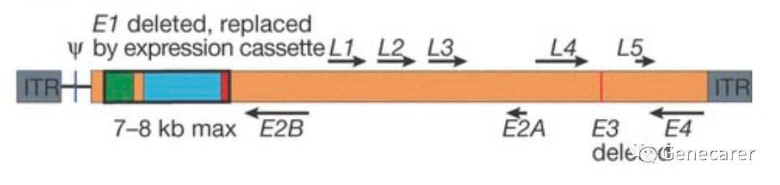 1953年人类在研究普通感冒病研究中发现了腺病毒,迄今为止已经发现了40多种不同血清型和93种不同种类的腺病毒,腺病毒通常通过感染眼、呼吸道或肠胃上皮细胞等感染人类。1977年,Frank Graham博士改造了腺病毒,并在细胞中重组了腺病毒,此后,腺病毒作为一种基因传递方式而被广泛开发。腺病毒(adenovirus,Ad)是一种球形、无包膜、直径约70~80 nm颗粒病毒,腺病毒基因组为大小为36kb的双链线性DNA,两端各有长约100 bp的反向重复序列,编码30多种“调控蛋白”。