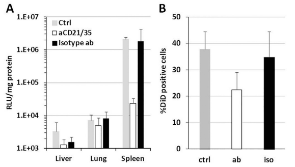 图5.CD21/35受体的摄取影响脾脏中基因表达和积累