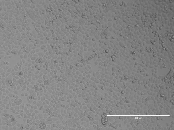 T25是用T25细胞培养瓶直接发货的形式。收到细胞后,拆开自封袋,不拆封口膜,75%酒精擦拭瓶身表面消毒,显微镜下观察细胞状态并拍照留存原始镜下图片,T25细胞培养瓶放入37℃培养箱平衡静置2~3h后,常规处理细胞。若细胞密度高于80%,可以按照传代处理(首次传代比例推荐1:2)。