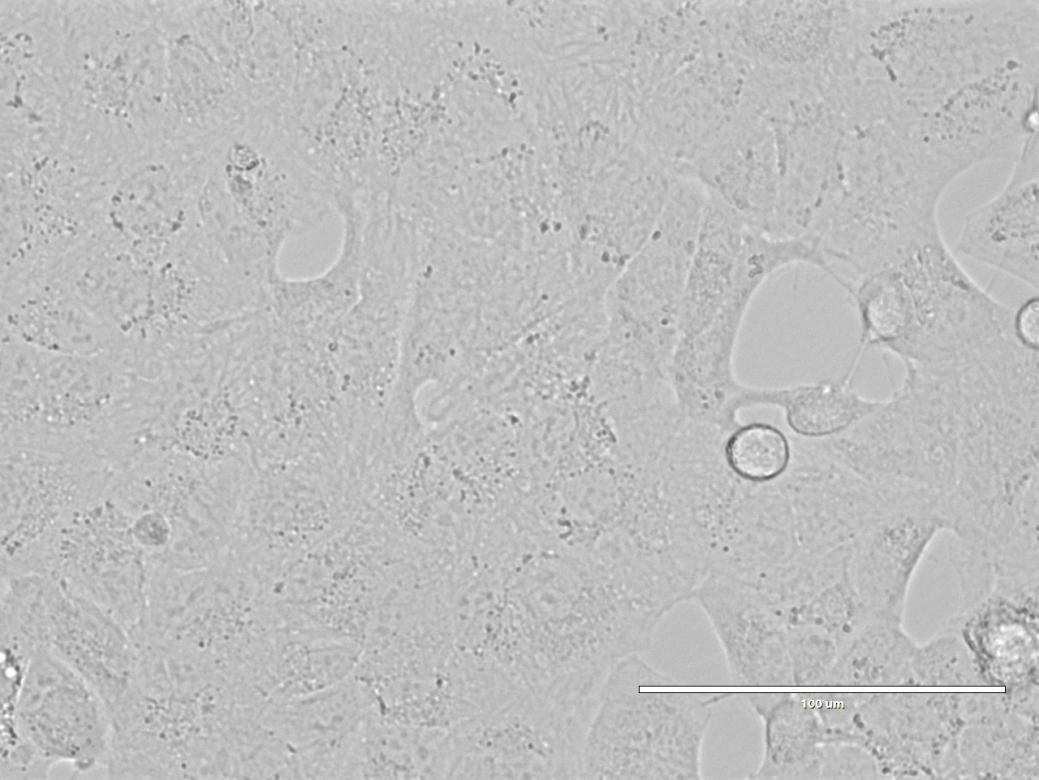 T25是用T25细胞培养瓶直接发货的形式。收到细胞后,拆开自封袋,不拆封口膜,75%酒精擦拭瓶身表面消毒显微镜下观察细胞状态并拍照留存原始镜下图片,T25细胞培养瓶放入37培养箱平衡静置2~3h后,常规处理细胞。若细胞密度高于80%,可以按照传代处理(首次传代比例推荐1:2)