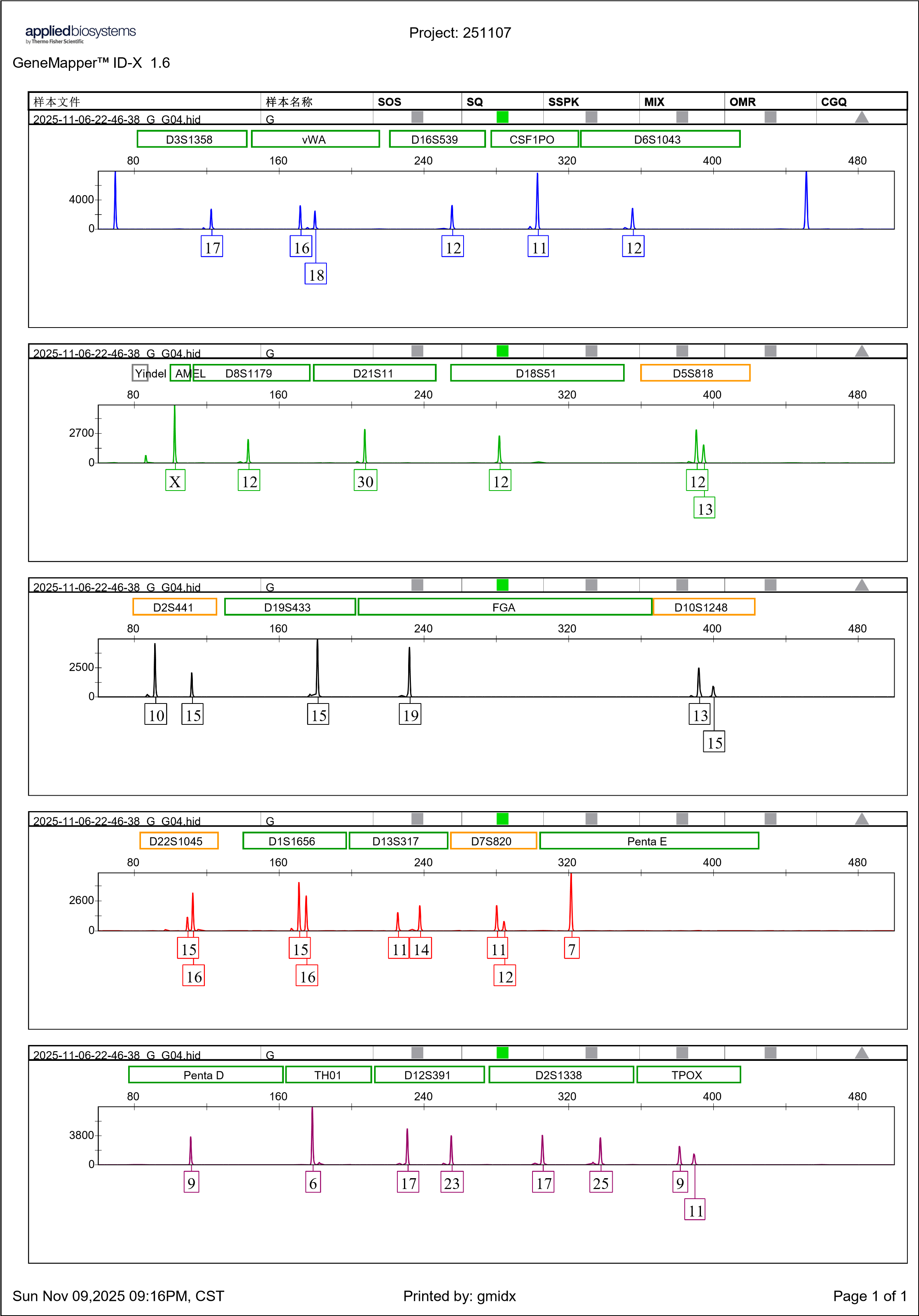 STR分型图谱: