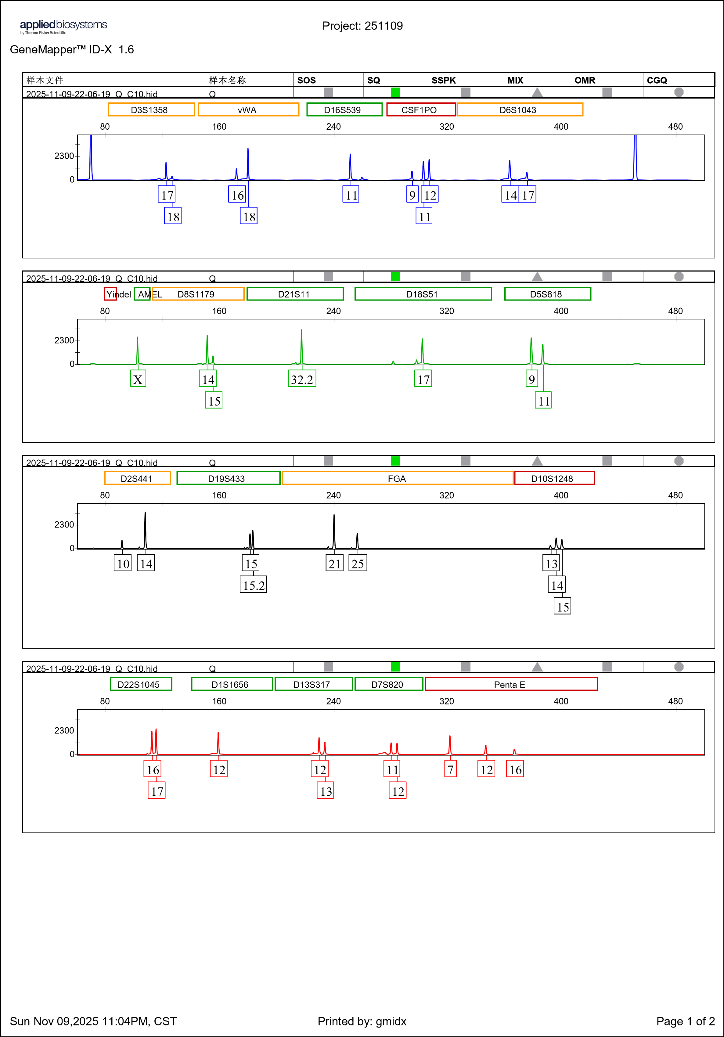 STR分型图谱: