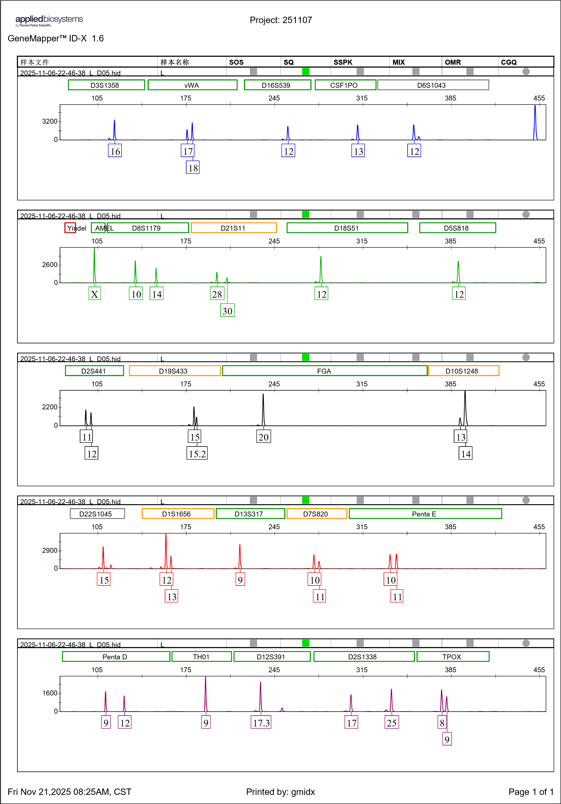STR分型图谱: